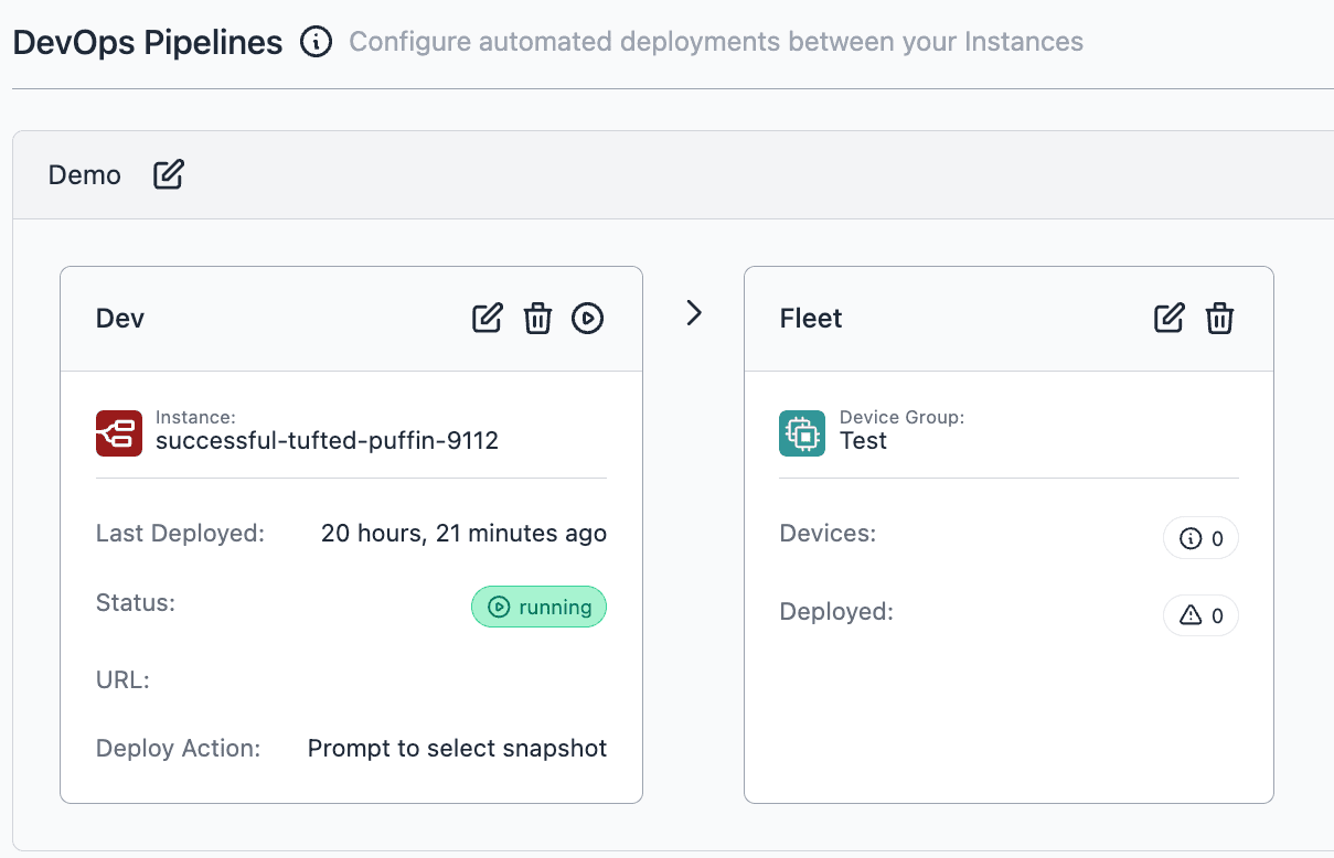 Building on our previous release that enabled the management of devices independently of instances. Now, the integration of individual devices into DevOps Pipelines is possible. This update marks a significant step towards more flexible and efficient device management within FlowFuse. In our ongoing efforts, we are also developing features to group devices, aiming to streamline and improve the overall device management experience.